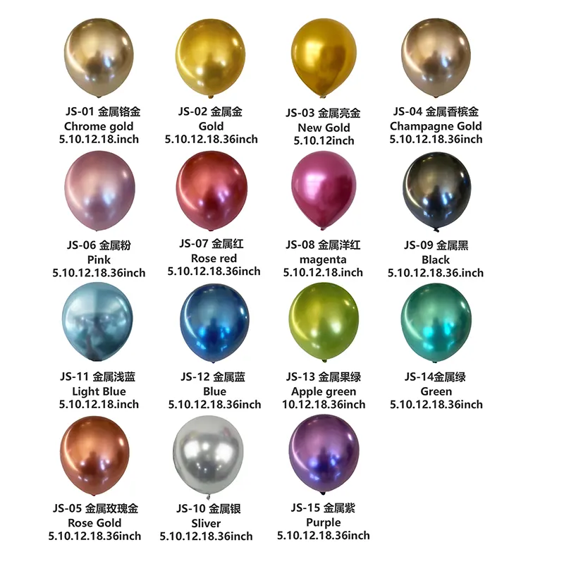 Ao contrário dos balões de látex comuns, o valor de 1,8g de balões de látex metálico está no equilíbrio perfeito de três fatores -chave: "Precisão em peso, textura metálica e estabilidade funcional". Estabelecemos um sistema abrangente de controle de qualidade que cobre todo o processo de produção, da seleção de matérias-primas ao envio acabado de produtos, com base no princípio dos "padrões de produção de engenharia reversa das necessidades do cliente".