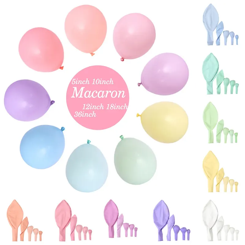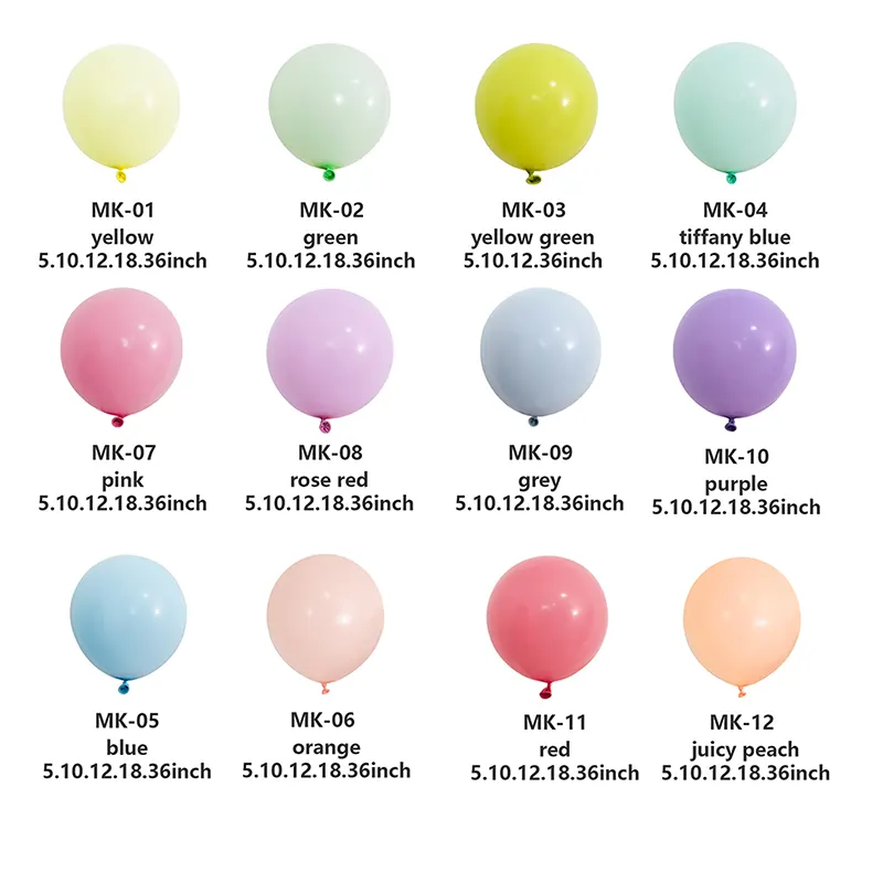 Colorido: Usando a tecnologia avançada de mistura de pasta de cores, restaure cientificamente as cores do macaron - azul -celeste, rosa bebê, amarelo creme, verde de grama claro e dezenas de outras cores macias e coloridas, a cor entre lotes é altamente consistente, fornecendo uma garantia de qualidade confiável para os balões de látex que você compra.