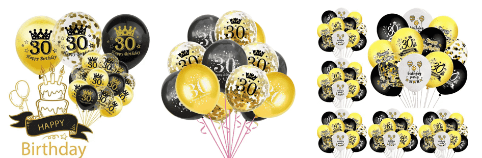 Os produtos de balões de 30 anos são itens decorativos especialmente desenvolvidos para comemorar aniversários de 30 anos, incluindobalões de látexde vários formatos e cores,balões de alumínio, ebalões impressos personalizadosimpresso com números, desejos de aniversário ou padrões personalizados. Eles são feitos de látex ou folha metálica e podem ser inflados com hélio ou ar.Acessórios para balõesincluem produtos como banners de papel para aniversários, barras transversais de papel para aniversários, anéis de papel para pendurar, panos de fundo, toalhas de mesa e talheres descartáveis para festas. Também oferecemos conjuntos de balões personalizados de 30 anos, decorações de festa personalizadas compostas por balões e acessórios para balões, proporcionando mais possibilidades para decoração de festas. Como para festas de aniversário de família, reuniões de amigos, celebrações de escritório, decoração de restaurantes ou locais de eventos, etc., para criar um ambiente alegre e acolhedor, podendo também ser usado como fundo para tirar fotos ou como enfeite para presentes.