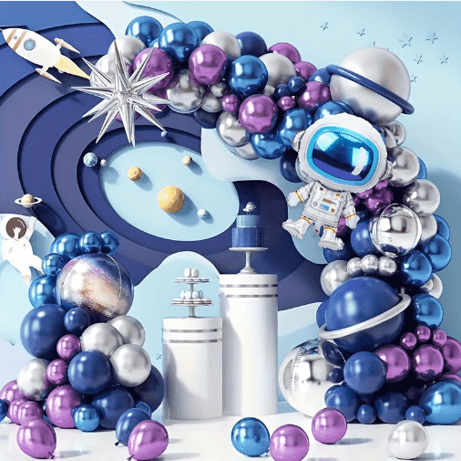 O conjunto de guirlanda de balão de folha de astronauta é a arma atraente para atividades em grande escala, adequado para parede de fundo de festa, layout de entrada de atividades de shopping. Tendo a corrente de balões como base, o balão de impressão de astronauta, o balão de folha de foguete, o balão planetário colorido e o balão de látex fosco são intercalados e fixos. O traje de guirlanda pode ser pendurado diretamente na parede ou na moldura da porta. O profundo sistema de cores do céu estrelado é combinado com um brilho metálico brilhante, que preenche instantaneamente a atmosfera envolvente do espaço e se torna o foco visual do local de atividades.