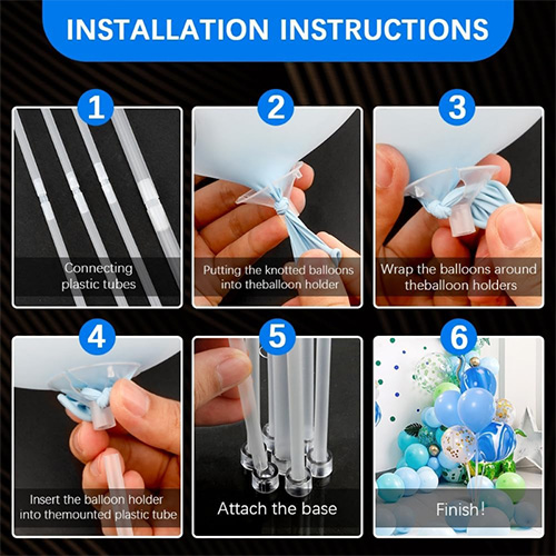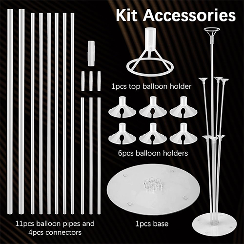 O suporte do piso do balão consiste em uma base, várias xícaras, tubos de plástico de diferentes comprimentos, articulações e um clube de gás de topo. Após a montagem, o balão pode ser consertado para criar um modelo de decoração de desktop ou balão, adequado para festas, casamento, celebração e outro layout de cena. O suporte de balão é conveniente para construir um traje tridimensional e bonito de balão.