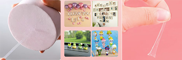 ② Coloque o ponto de cola diretamente no balão. Rasgue o adesivo branco nas costas. Tente não tocar a superfície da cola pontilhando demais com as mãos ao operar. Tocá -lo demais afetará a viscosidade.
