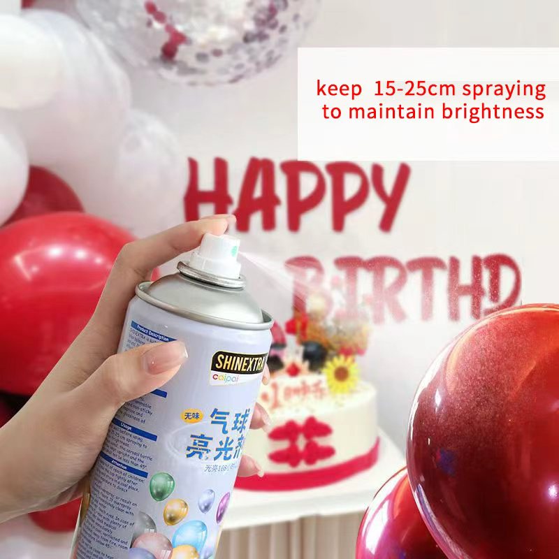 Spray de brilho da base de petróleo de balão: Adequado para todos os tipos de balões de látex (não recomendados para balões de alumínio). Ideal para casamentos, festas de aniversário, chuveiros de bebês, aberturas de negócios, vitrines, correntes de balão, arcos dos balões e muito mais.