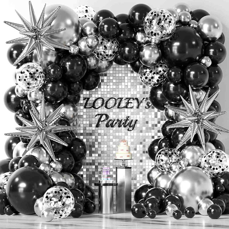 4. kits de guirlanda de balões pretos e prateados personalizados, privados e exclusivos.
