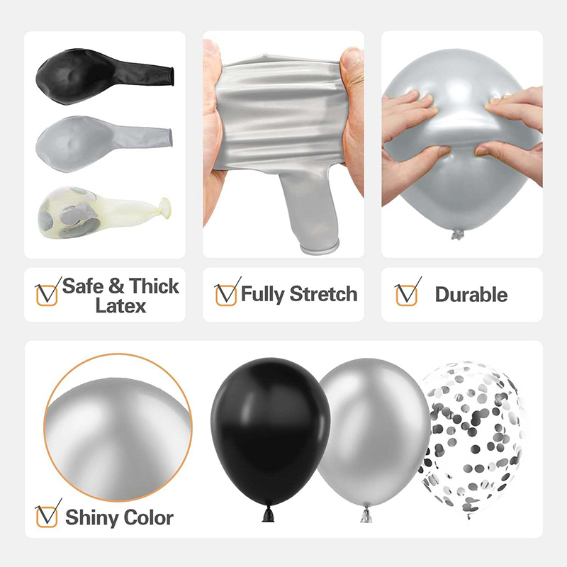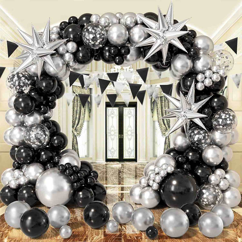 1. amostra grátis de kits de guirlanda de balões pretos e prateados.