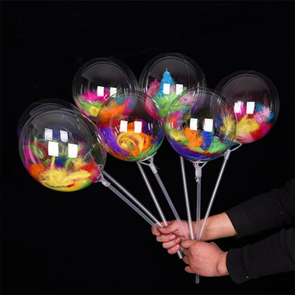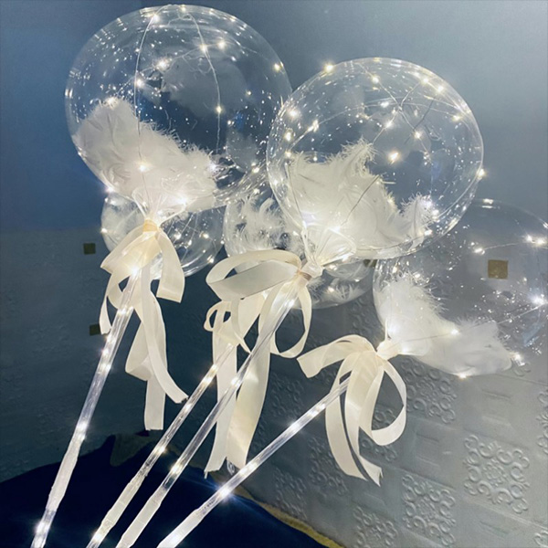 Tiras de luz LED, tubo de plástico, copo de balão, penas |