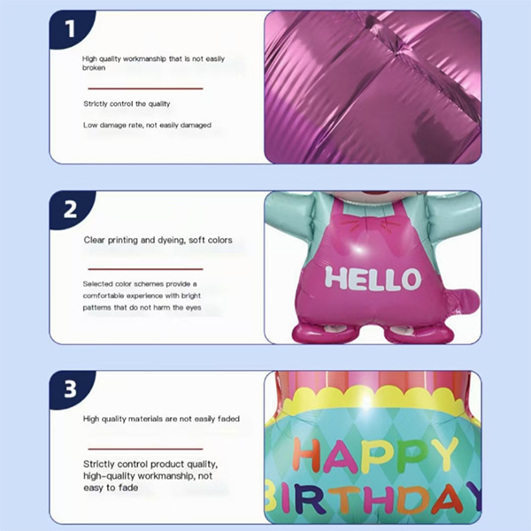 Esses balões em forma de bolo têm muitos tipos. Eles vêm em diferentes formas, camadas e estilos. Existem balões simples em forma de bolo fosco de três camadas. Tem velas falsas. Parece elegante. Existem balões coloridos em forma de bolo de três camadas. Ele usa cores brilhantes como vermelho, laranja e roxo. Tem padrões de estrela. Cheio de energia. Existem balões de papel alumínio em forma de bolinhas de duas camadas. Possui bordas de creme de arco -íris e pontos coloridos. Muito infantil. Também existem criativos com personagens de desenhos animados. Como o urso segurando um balão de papel alumínio, urso abraçando o balão de folha de cupcake e assim por diante. Eles misturam elementos de bolo com formas fofas. Atender às necessidades de decoração de várias cenas. Como festas de aniversário e celebrações. Adicione destaques visuais exclusivos a cada momento feliz.