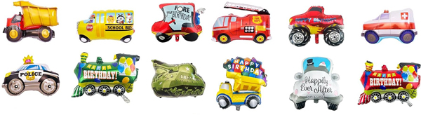 Se quiser usar em festas pequenas, ou como decoração. Você pode escolher os pequenos kits de balão de folha de veículo de desenho animado que combinamos para você. Este kit geralmente inclui um grande balão de alumínio de veículo de desenho animado, um balão de alumínio redondo de 18 polegadas e um balão de estrela de 18 polegadas. Decorá-la na parede principal permite que os convidados tirem fotos ideais para as redes sociais, pois como sabemos, sem uma foto com fundo perfeito a festa não fica completa.