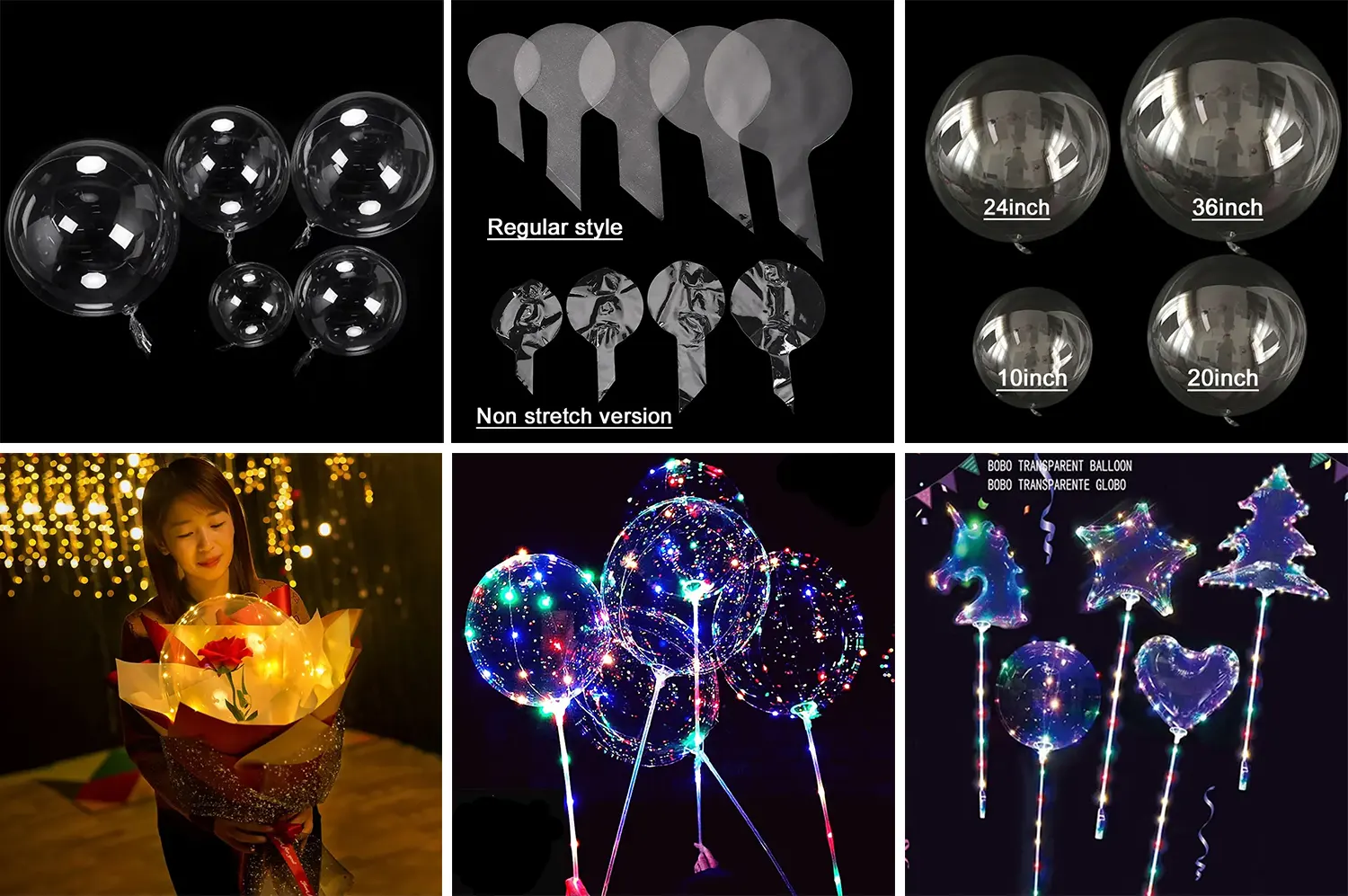 Os principais materiais, puro e transparente: o filme de poliéster ambientalmente amigável de qualidade importado é selecionado, e cada balão bobo claro tem alta transparência e brilho de cristal. Após a inflação, ela tem uma variedade de usos e efeitos visuais impressionantes. .
