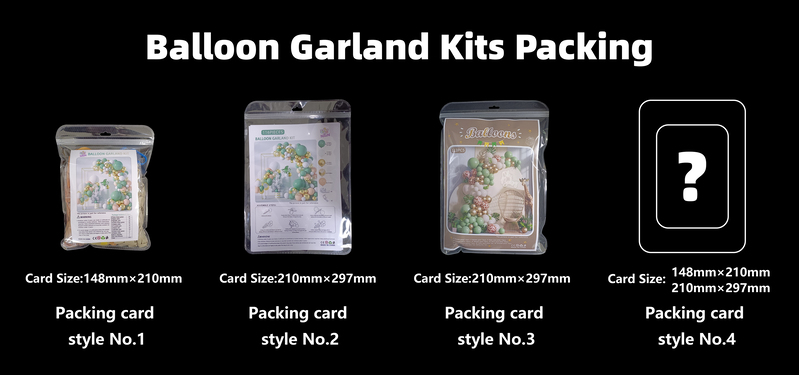 Para a embalagem dos kits de arco de balão, depende da ocasião de venda. Se você vendê-lo on-line, o estilo de embalagem nº 1 abaixo e o vácuo serão bons para você, ele pode ajudá-lo a economizar espaço e custos de envio. Mas se você vende os kits de arco de balão colorido personalizados na loja, a sacola de embalagem maior no estilo de embalagem abaixo nº 2 ou tamanho maior será adequada para você, a sacola de embalagem maior com cartões de kits de arco de balão colorido de estilos diferentes pode mostrar os produtos de uma maneira melhor para mostrar aos seus clientes. Mas se você quiser personalizar seu estilo de embalagem, também está tudo bem, você pode nos dizer suas necessidades, nosso designer fará isso por você. Ou você faz o design e nos envia o design final, nossos trabalhadores farão as decorações dos kits de arco de balão colorido de alta qualidade com base em suas necessidades.