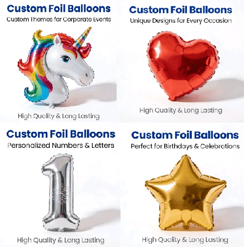 2. Precisão e vantagens criativas da personalização.Balões de alumínio personalizados podem realizar designs personalizados em tamanho real e padrão completo, variando de miniformas de apenas alguns centímetros a balões gigantes de vários metros, que podem ser personalizados de acordo com os requisitos.Balões metalizados personalizadoscomo LOGOTIPO da marca, imagem do produto, slogan da atividade, fotos pessoais, nomes de casais e datas de aniversário podem ser restaurados com alta precisão. Balões de alumínio personalizados também podem alcançar o desenvolvimento exclusivo de modelagem, como mascotes de marca, edifícios de referência em modelagem de balão, etc., é difícil substituir outros produtos decorativos.