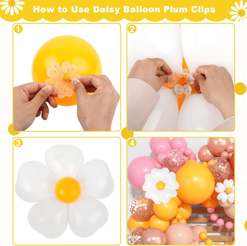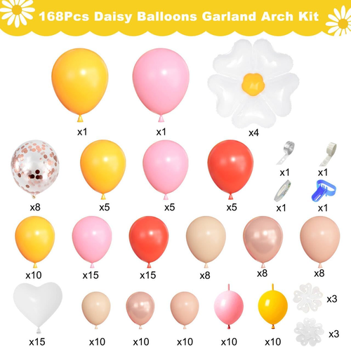 Daisy dá às pessoas os estilos da primavera. Também significa vida, renascimento e força. Assim, o kit de guirlanda em arco de balão com margaridas é adequado para festa de chá de bebê, aniversário de bebê, festa de revelação de gênero e outras ocasiões. Este kit é composto principalmente porbalões de látex. Além disso, os balões em formato de margarida também são indispensáveis. Eles incluembalão de margaridae balão de látex em formato de margarida (composto por clipes de ameixa e balões de látex). O balão de látex em forma de margarida adiciona mais camadas a este kit. É muito fácil de fazer, basta usar o clipe de ameixa e depois colocar o balão amarelo no centro e depois colocar os balões de coração branco em volta dele. Você fará o lindo balão em formato de margarida. Além disso, também incluímos balões de confete em sua embalagem. Quando combinados com outros elementos, podem criar um efeito mais impressionante.