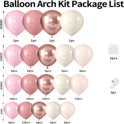 No planejamento de festa de aniversário, casamento, chá de bebê e festa de revelação de gênero, o kit arco de balão rosa empoeirado sempre foi citado.balões de látexem diferentes tons de rosa, incluindo balão de látex rosa empoeirado, balão de látex rosa claro fosco, balão de látex rosa retrô, balão de látex dourado rosa metálico. Além disso, também foram adicionados branco fosco, marfim retrô e outras cores. Os tamanhos dos balões de látex são 5 polegadas, 10 polegadas, 12 polegadas e 18 polegadas. Diferentes tamanhos fazem com que este kit de arco tenha lindas camadas. Se você deseja uma sensação de maior energia, use balões de cores claras no perímetro externo da sua decoração. Por outro lado, se você deseja uma aparência elegante, use balões de cor escura no perímetro de sua decoração. Diferentes combinações são todas muito interessantes e, ao mesmo tempo, muito fáceis de montar. Você também pode usar balões 50pcs-130pcs para fazer o kit pequeno de balão rosa empoeirado ou usar diferentes métodos de instalação para criar um kit de guirlanda de balão rosa empoeirado, enchê-los com hélio e eles serão capazes de fazer o efeito flutuante.