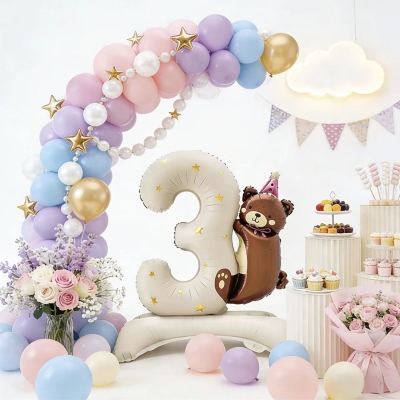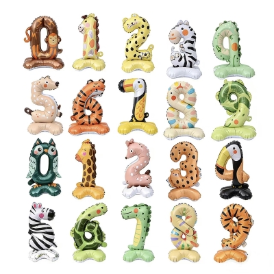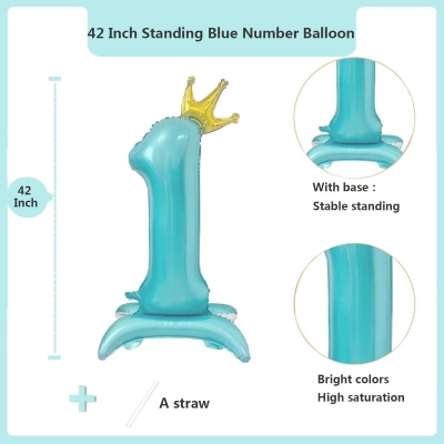 A escolha é ampla e diversificada. Tem muitas séries diferentes. Hábalões de número em pé de folha de coroa. Os tons são ouro champanhe, azul claro, rosa e outros. Eles emitem uma vibração chique e festiva. Há lindos balões de papel alumínio com números em pé. Eles estão cheios de alegria infantil. Existem balões de folha com números em pé com padrão animal. Os looks contam com detalhes como estampa de leopardo e estampa de zebra. Eles têm uma aparência única e especial.