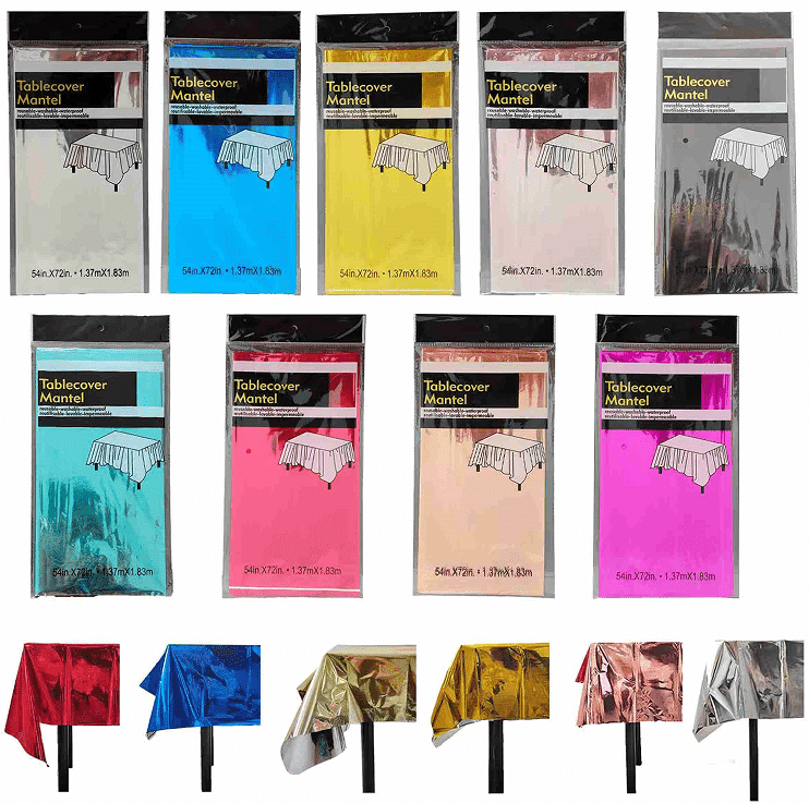 Os tamanhos comuns de toalhas de mesa de alumínio são 1,37 x 1,83 m, 1,37 x 2,74 m e 1 x 2,7 m para mesas de festas domésticas e de pequeno e médio porte. Alguns produtos podem ser personalizados em tamanho e padrão de toalha de mesa de acordo com os requisitos do cliente para atender aos requisitos de layout da área de trabalho de diferentes cenas.