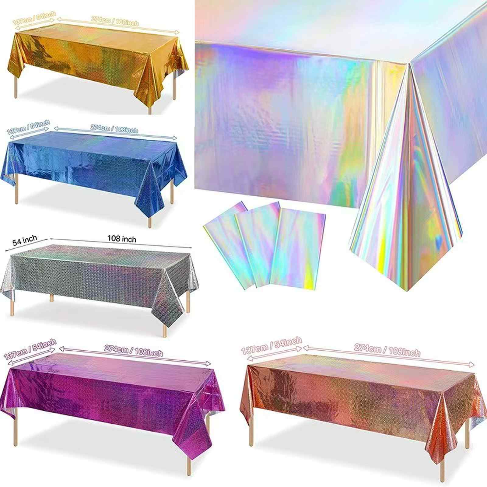 cor do arco-íris, toalha de mesa de papel alumínio com animais de desenho animado e padrões de bolo, adequada para festas de aniversário infantis; ouro, prata, cor laser com estrelas e padrões de letras, adequados para festas de aniversário de adultos, comemorações de aniversário, festas de namoradas, etc., podem ser organizados em mesas de jantar familiares, mesas de festas de hotéis, mesas de piquenique ao ar livre e outras cenas.