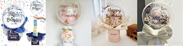 Uma ou mais rosas podem ser colocadas dentro do balão de Bobo. É uma maneira clássica de mostrar sentimento romântico. O balão claro é como uma capa. Faz com que as flores pareçam mais brilhantes e mais adoráveis. Rosas vermelhas significam paixão. Rosas rosa significam suave e suave. O visual é melhor com luzes LED. É um bom presente para uma garota em seu aniversário.