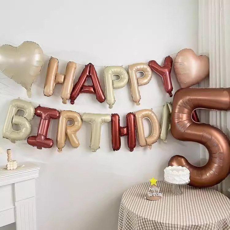 Diferente dos balões com letras planas e deformáveis do mercado, os balões com letras Borun adotam um processo de corte tridimensional. Após a inflação, cada letra pode manter uma forma completa e nítida, sem colapso ou rugas. As letras são geralmente letras grossas americanas, com um tamanho padrão de 16 polegadas e um pacote de cartão de papel requintado separado. Eles também são estilos de produtos com grafias em inglês e espanhol. Eles estão disponíveis em cores monocromáticas, gradientes, padrões impressos e outros estilos. Eles podem ser combinados livremente de acordo com o estilo geral do layout para criar um efeito visual coordenado e unificado. Também oferecemos aos clientes um serviço personalizado de balão de folha de carta para festa de feliz aniversário, personalize seu próprio senso de cerimônia adicionando idade digital e ortografia do nome. Além desse estilo básico, também produzimos Feliz Aniversário em letras minúsculas, que podem ser usadas diretamente após a inflação, sem emendas.