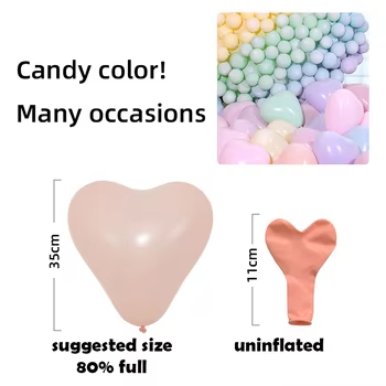 Atualmente disponível, os balões em forma de coração fosco vêm em 17 cores diferentes. Cada pacote contém 100 balões, mas as quantidades de embalagem personalizadas, como 50 ou 20, também estão disponíveis. Balões elegantes de coração fosco oferecem cores vibrantes e excelente brilho. Muitos clientes combinam balões de amor com outros arcos de balão para um efeito mais contínuo. Esses balões são versáteis e podem ser usados para criar buquês de balão deslumbrantes ou cenários exclusivos para atender às suas necessidades decorativas. Sem dúvida, eles se destacarão em seu evento especial, criando memórias inesquecíveis.