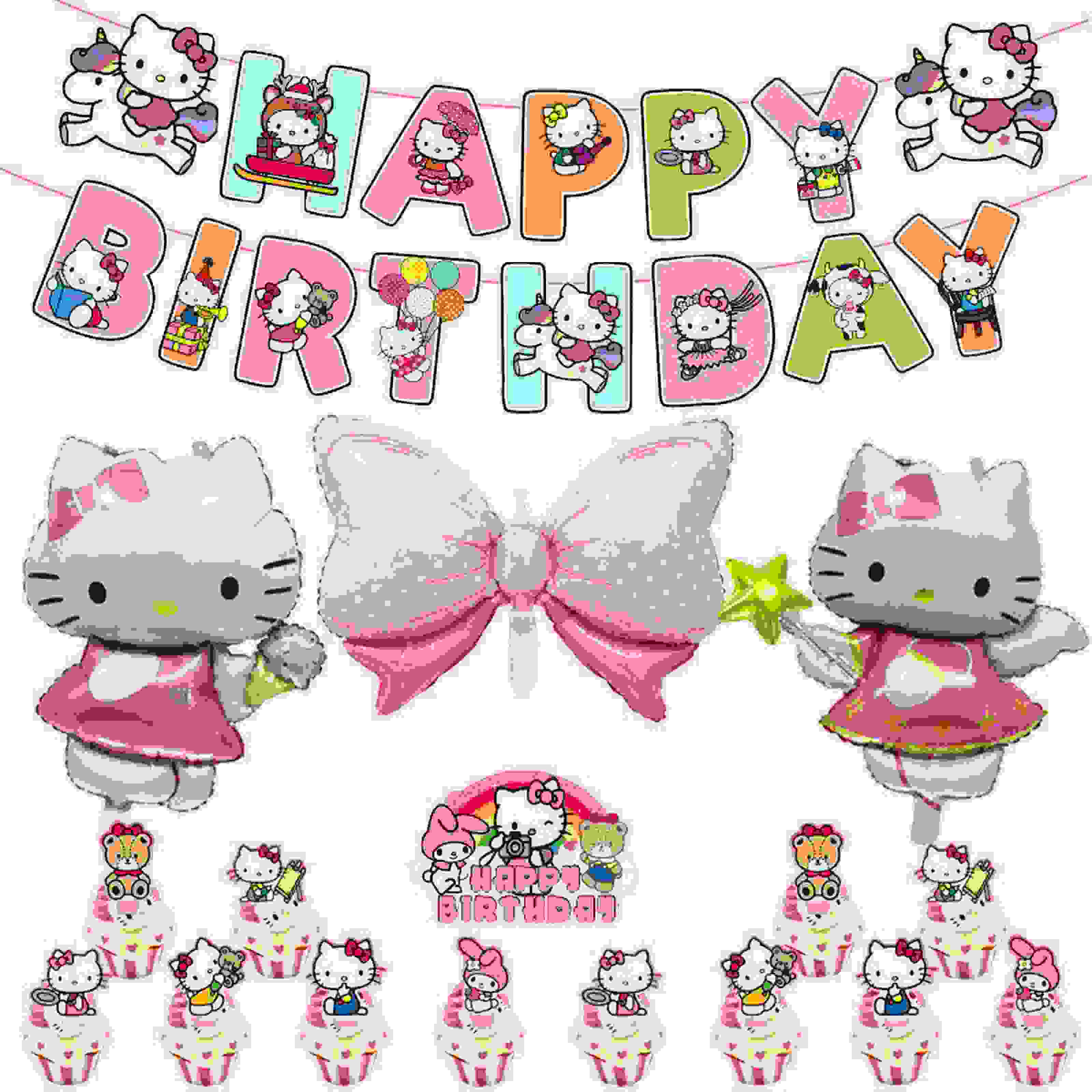 OláKitty nasceu em 1974. O icônico laço rosa, cotão branco, pequenas almofadas de carne e outros elementos se tornaram símbolos culturais globais em idade, gênero e cultura. Niun®The Hello Kitty Party Balloon Series compreenda com precisão o valor emocional deste IP. Com a imagem clássica de Hellokitty como o núcleo, ela é projetada como balões de papel alumínio. Os balões de látex são combinados com acessórios de balão do mesmo sistema de cores para enriquecer o nível visual. Pode ser usado sozinho ou em combinação com outras decorações de festas.