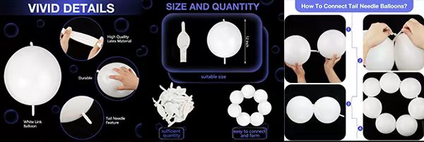 Seja uma festa de aniversário, casamento, celebração ou qualquer outra ocasião, combinando balões da mesma cor ou de outras cores, você pode criar a atmosfera elegante que deseja. Eles serão os enfeites perfeitos para aniversários, Halloween, festas de boas -vindas de bebê, festas de Natal ou qualquer outro evento. Balões de Link são todas as escolhas ideais para criar uma atmosfera única e atrair atenção.