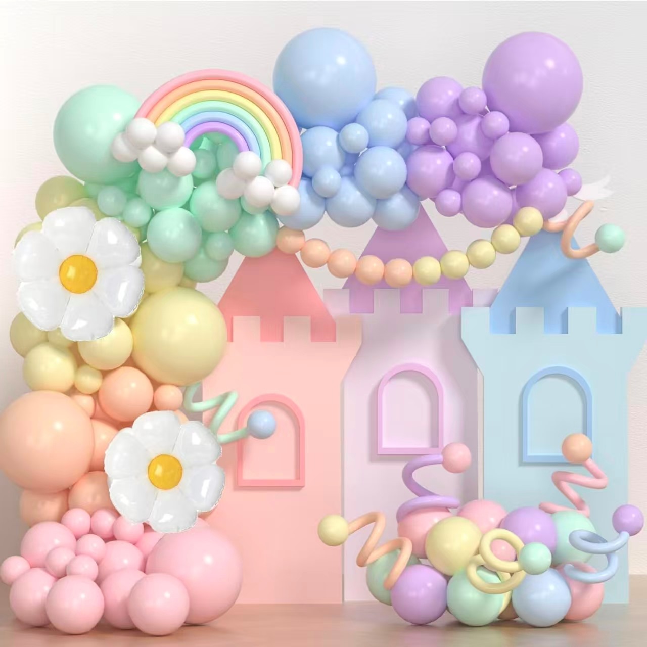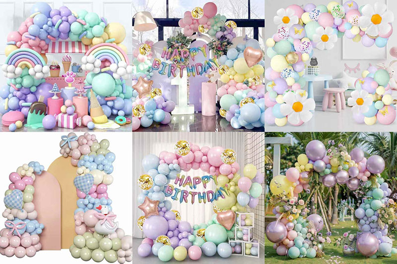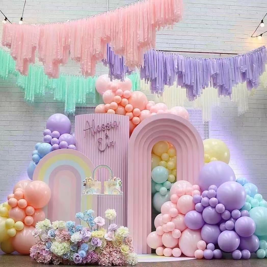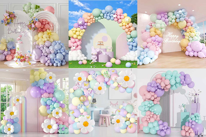 O arco de guirlanda de balões de festa Macaroon é muito flexível. Diferentes combinações podem mostrar muitos estilos de decoração.