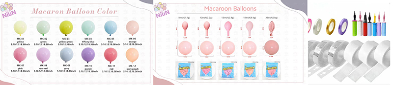 O conjunto também vem com corrente de balão Niun®, pontos de cola, fita e outras ferramentas. Você pode usar essas ferramentas para combinar balões livremente. Você pode fazer uma guirlanda ou uma parede de fundo. Você também pode misturá-los com balões de alumínio e balões mágicos. O resultado é uma decoração com mais profundidade e efeito 3D.
