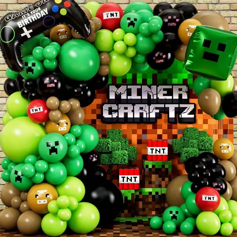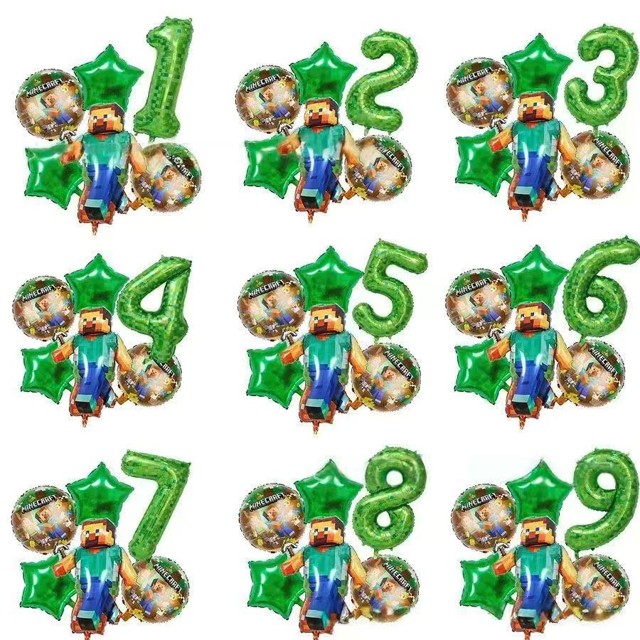 Os balões de papel alumínio do Minecraft são inspirados nos padrões de pixel de grama e camadas de sujeira no jogo. Eles vêm em formas de números verdes, cobrindo 1 a 9. A textura do pixel nos números copia o estilo do jogo. Combine -os com blocos de grama combinando e balões de estrela. A tela de idade também tem uma aparência do Minecraft. Eles são um destaque divertido para festas de aniversário.