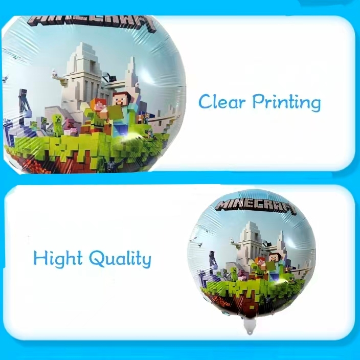 Esses balões de papel alumínio usam folha espessada. Eles seguram bem o ar. Eles ficam cheios desde o início até o final da festa. O material é difícil e difícil de rasgar. Objetos nítidos não os perfuram facilmente. Eles mantêm sua forma mesmo em uma festa animada. A impressão usa tinta ecológica. As cores são brilhantes e não desaparecem facilmente. Mesmo após muitos usos, os padrões permanecem claros. Os detalhes do pixel permanecem nítidos. Eles dão aos jogadores uma celebração do Minecraft de longa duração, segura e verdadeira.