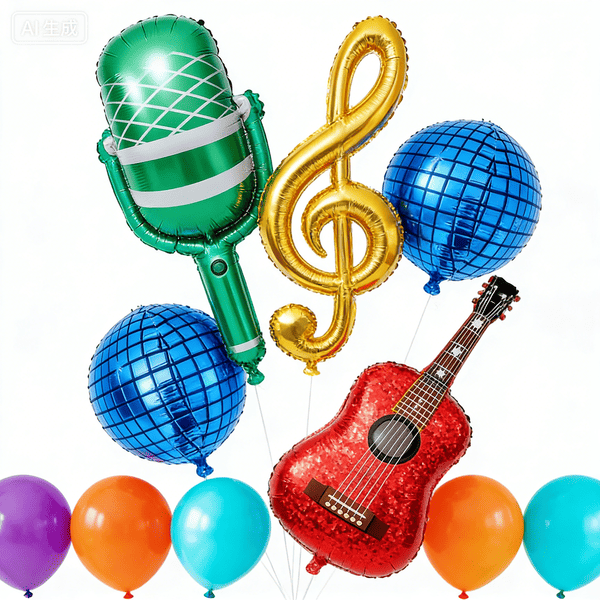 Balões musicaisvêm com diferentes tipos, como balões de folha de instrumentos musicais (balões de folha de guitarra, balões de folha de microfone) e balões de folha de nota musical. À medida que a música pop se torna cada vez mais popular, eles agora possuem um grande mercado. Por exemplo, o filme: Kpop Demon Hunters agora é um vírus nos Estados Unidos. Muitos adolescentes americanos esperam incorporar elementos musicais relevantes em suas festas de aniversário para homenagear este filme. Para atender a todas as necessidades dos clientes, preparamos as diferentes cores para eles: para os meninos pode-se usar azul escuro, azul, preto e marrom; para meninas, você pode usar rosa, rosa claro, roxo e assim por diante. Há sempre uma cor adequada esperando por você. Eles têm grande flexibilidade e você pode combiná-los da maneira que quiser. Como adicionar alguns balões de látex para fazer um conjunto de guirlandas de balões musicais. Ou use vários balões para fazer um pequeno conjunto de balões musicais.