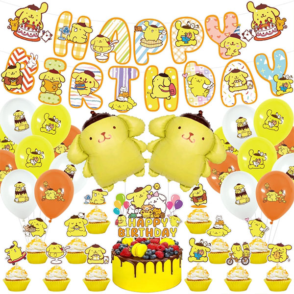 A NiuN® Balloon Factory também combinou um conjunto de festa para balão de látex impresso PomPomPurin, que incluía um banner de feliz aniversário, cobertura de bolo, balão de látex impresso PomPomPurin, cobertura de cupcake e muito mais. As imagens nessas decorações são coloridas e utilizam tecnologia de impressão ecologicamente correta para atrair efetivamente a atenção e realçar o apelo visual da festa. Este conjunto de decorações foi pensado para ser fácil de montar, sem gastar muito tempo, e você pode se divertir com as crianças. Pode facilmente pendurar o banner de aniversário no teto ou na parede, o banner é colorido e o balão é fácil de inflar. As decorações do bolo são lindamente feitas. Com esses materiais para festa de aniversário, você pode começar uma maravilhosa festa de aniversário em pouco tempo.