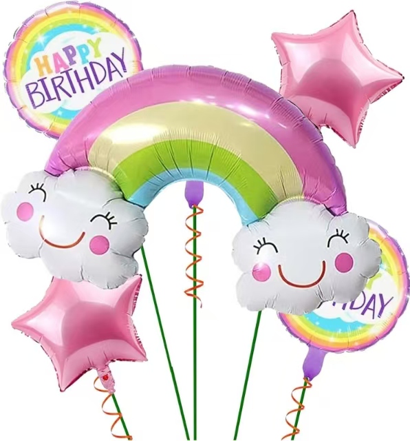 Este kit de balão de folha de arco-íris também é um de nossos produtos mais vendidos. Este kit tem uma variedade de opções para escolher, que podem ser combinadas com balões foil arco-íris, balões foil redondos e estrelados, balões foil numéricos e balões de látex. Se você quiser combinar diferentes kits de balões, podemos personalizar seu próprio kit de balões para você. E todos os kits de balões em nossa fábrica implementam o preço da escada, se você comprar kits de balões de folha de arco-íris a granel, forneceremos preços mais favoráveis. Os formatos de arco-íris e nuvens criam uma atmosfera de festa memorável e única, e você pode usá-los em diversas ocasiões, economizando tempo e esforço para criar estilos diferentes.
