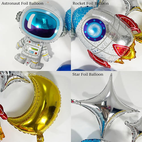 Os balões foil possuem astronautas, foguetes, discos voadores e outros estilos, que agregam muito interesse e realidade a esta guirlanda.