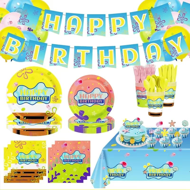 Nos itens de festa infantil, o jogo de mesa Bob Esponja é uma opção divertida e útil. Tem personagens famosos como Bob Esponja e Patrick como desenho principal. O conjunto vem com pratos, copos de papel, guardanapos e utensílios. As placas mostram Bob Esponja com um grande sorriso e Patrick com uma cara engraçada. O design adiciona águas-vivas, algas marinhas e conchas para trazer um estilo marinho. As cores são brilhantes e ricas em camadas. Os copos de papel e guardanapos seguem a mesma temática. A mesa inteira parece cheia de diversão no oceano. A louça utiliza materiais seguros e ecológicos. Mantém um estilo fofo e também é útil. Cabe em festas de aniversário, eventos temáticos ou refeições em família. O conjunto é um feliz “banquete da Fenda do Biquíni” para as crianças e oferece aos pais uma opção de festa fácil e de alta qualidade.