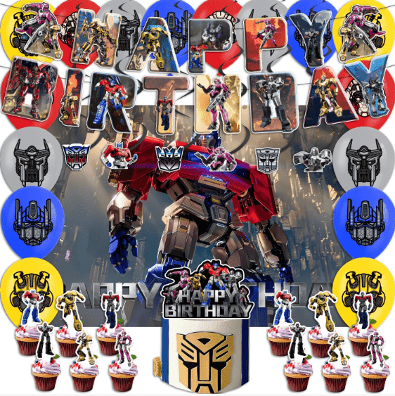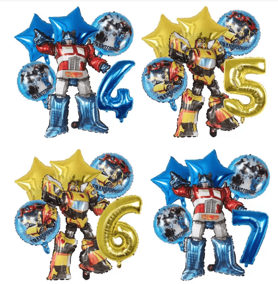 Combinação clássica: balão foil Transformers com bandeira temática de balão de látex colorido, balão de látex como base, balão foil como núcleo visual, bandeira como decoração temática, adequado para festas de aniversário, celebrações de festivais do layout básico.