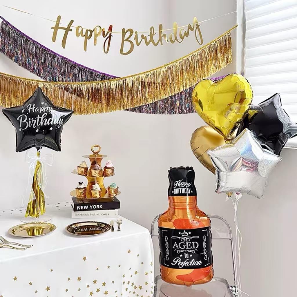 Em termos de classificação do produto, os balões de alumínio para garrafas de vinho têm uma variedade de estilos. Eles incluem formatos clássicos de utensílios de vinho, como garrafas de vinho, canecas de cerveja, garrafas de champanhe e taças de champanhe. Além disso, são impressos designs especiais com saudações ou slogans temáticos como “Salute!”, “Felicidades” e “Feliz Aniversário”. Esses designs atendem às necessidades de decoração de diferentes ocasiões e estilos.